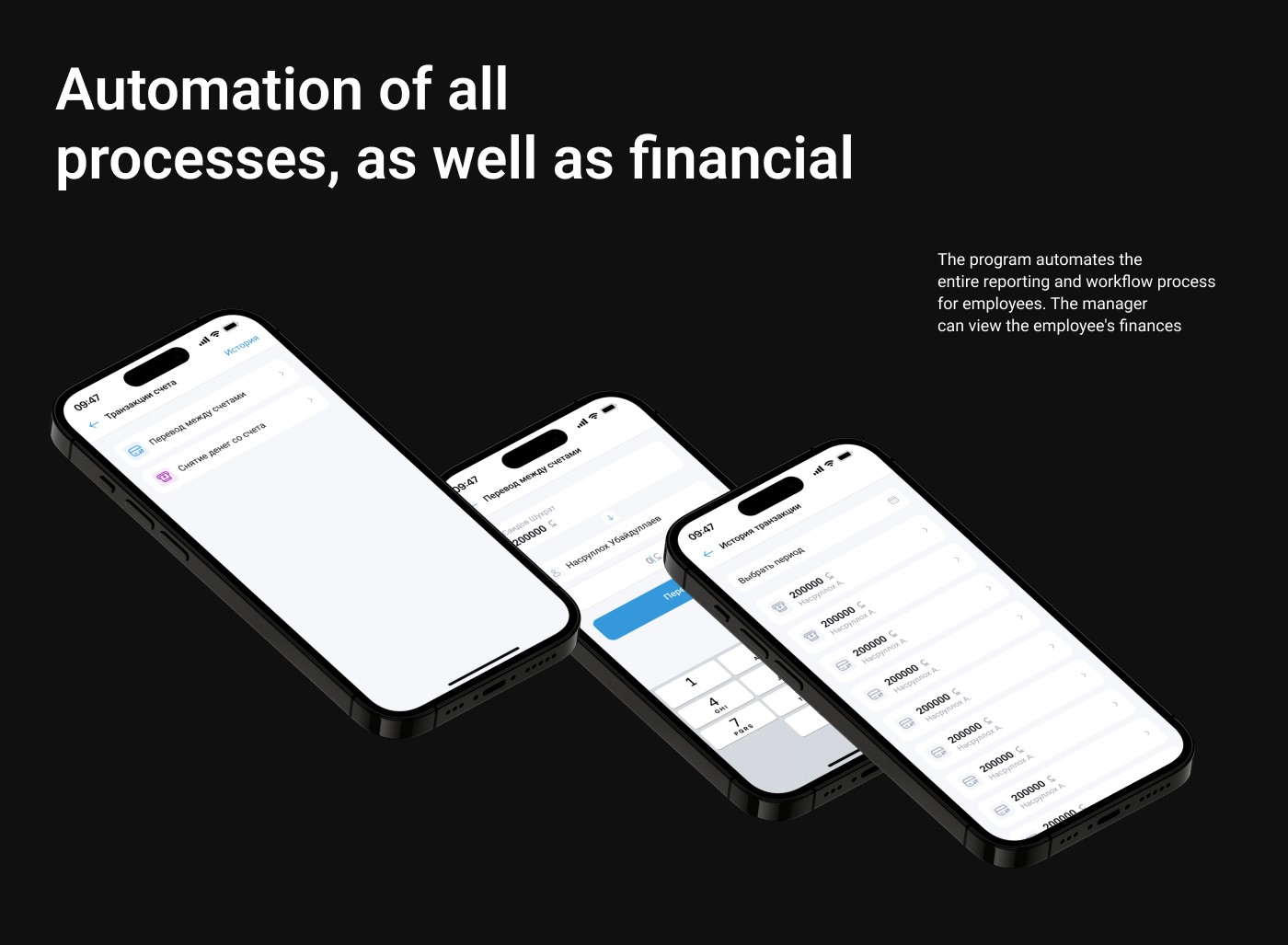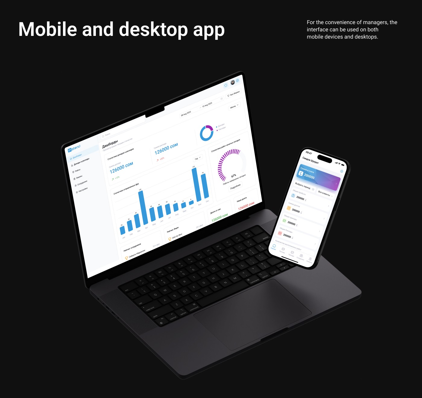 Automate and simplify processes for employees of logistics companies. Automate financial reports and streamline accounting tasks. Develop two interfaces: a mobile and web interface for administrators, and a mobile-only interface for employees.