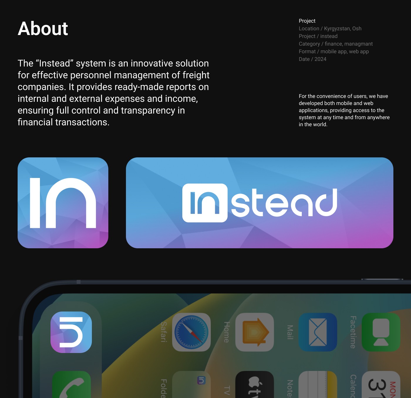The “Instead” system is a startup innovative solution for effective personnel management of freight companies. It provides ready-made reports on internal and external expenses and income, ensuring full control and transparency in financial transactions.